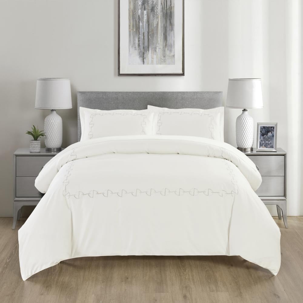 فروتشي كيس لحاف كينج مُطرز، 5 قطع لون أبيض قطن 100%
