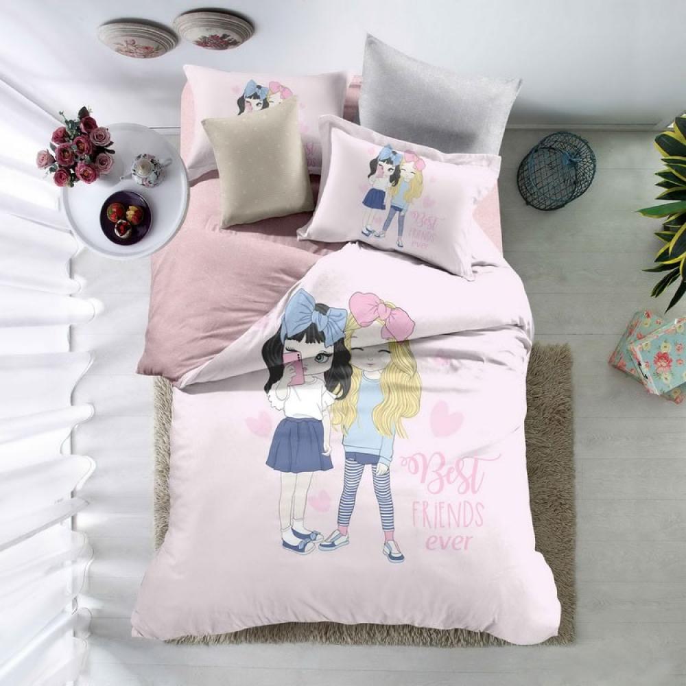 فيفرت طقم لحاف أطفال وردي نقشة بألوان متعددة سنجل، طقم 4 قطع