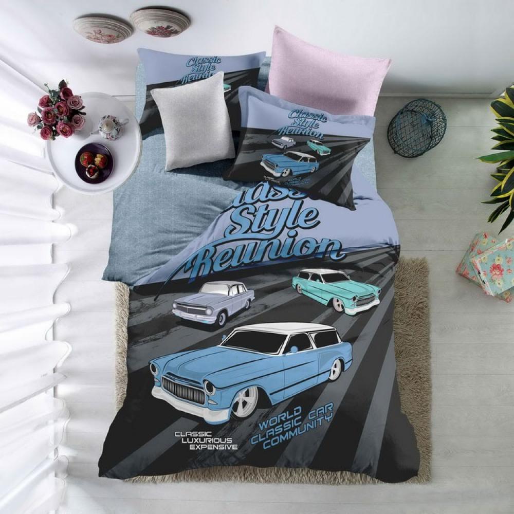 فيفرت طقم لحاف أطفال أزرق نقشة بألوان متعددة سنجل، طقم 4 قطع